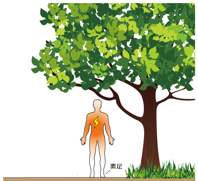 アーシング(Earthing)とは、体を地面(大地)と電気的につなげることです。アーシングにより、体にたまった電気が、放電ができると思ってください。